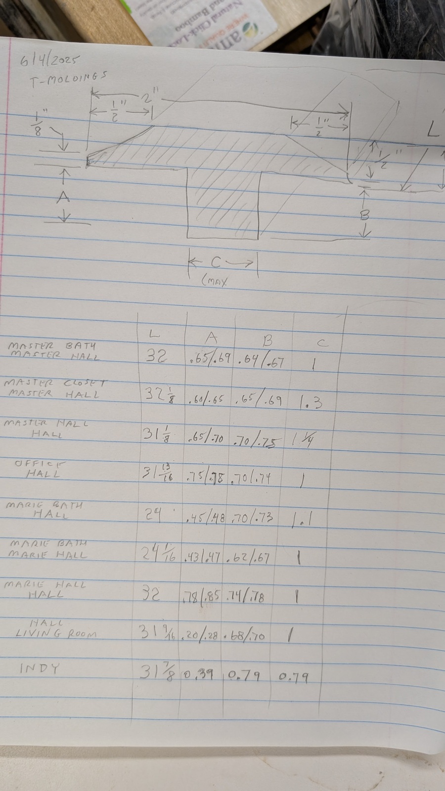 Threshold dimensions table