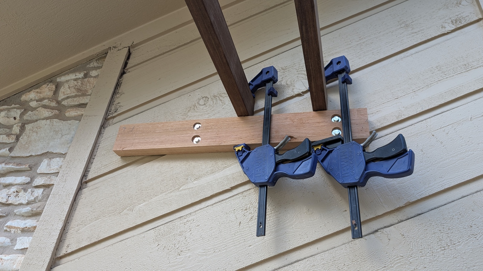 Beams clamped to house side support (lower view)