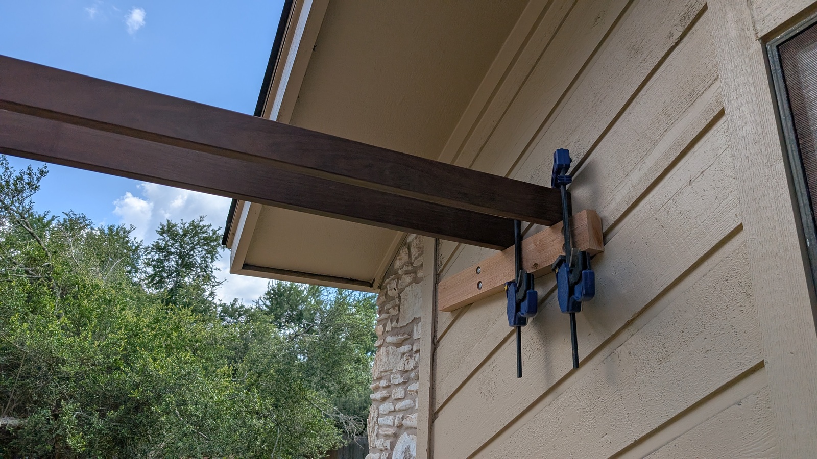 Beams clamped to house side support