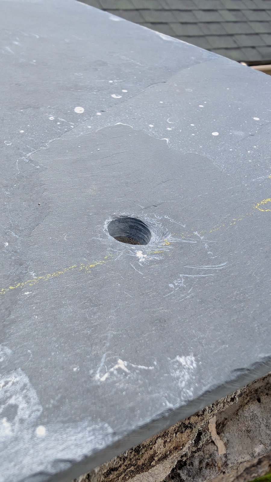 Post cap anchor hole closeup