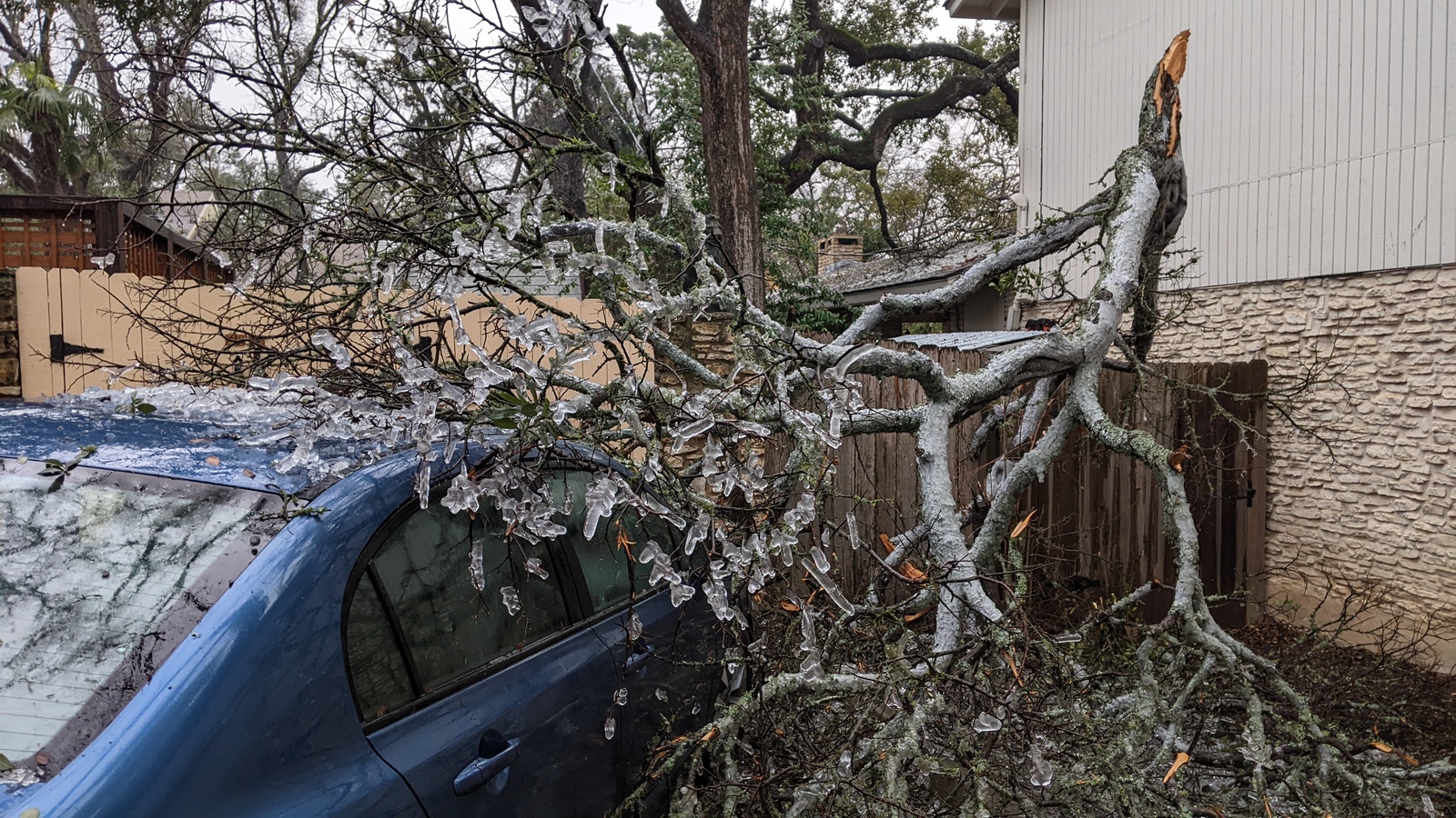 Tree on car during Arborgeddon