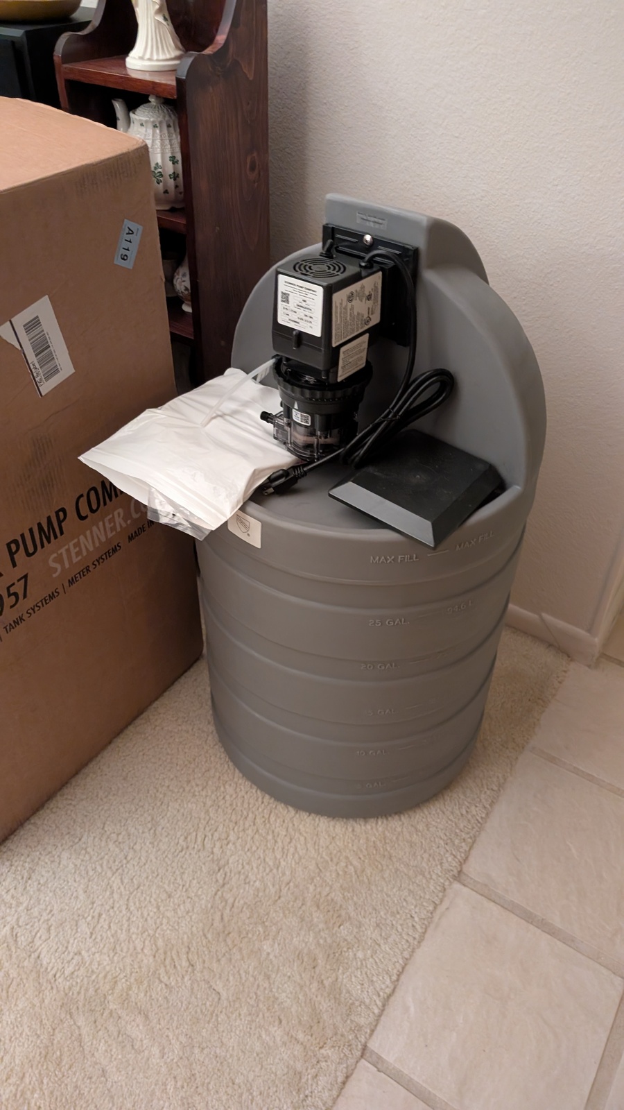 Stenner pump and tank unpacked