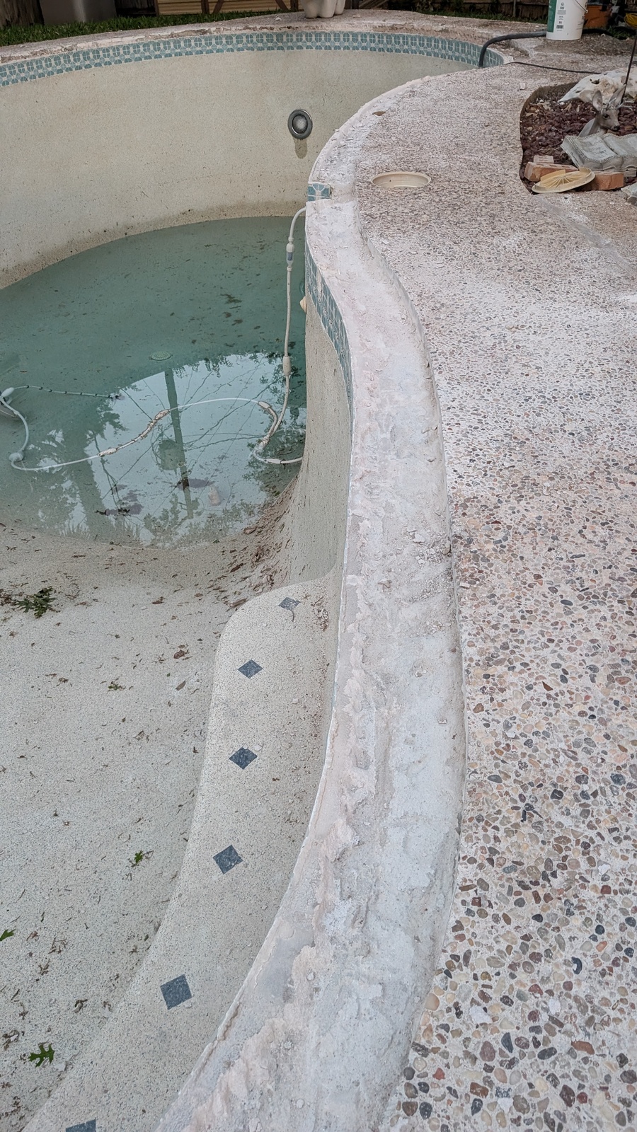 See Pool Coping / Tiles: Day 1 Progress - Demolition and Emptying