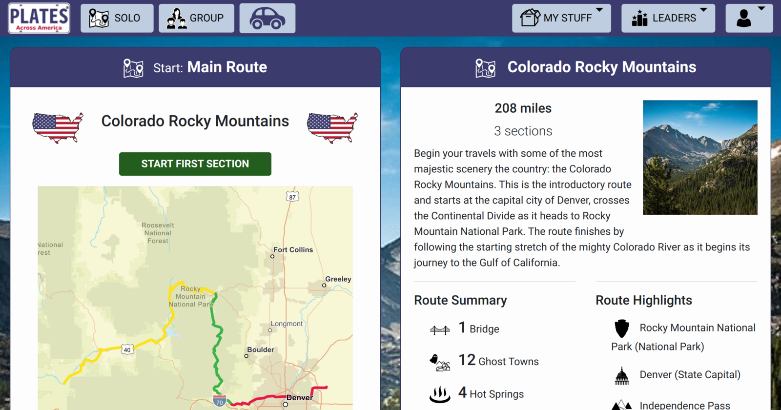 Route start page