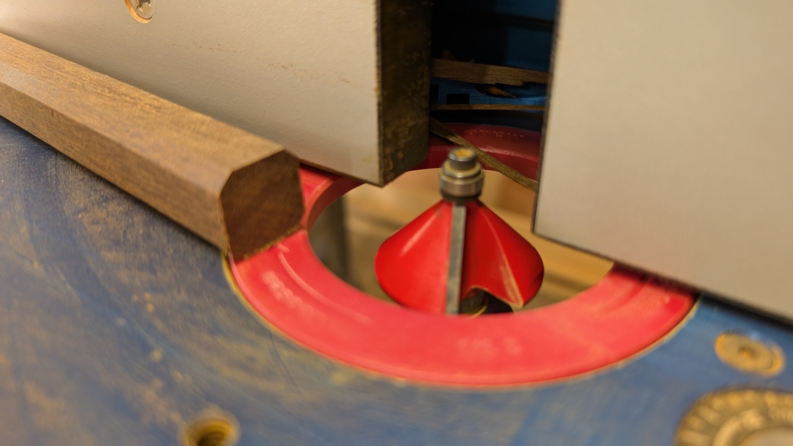 Router bit and beveling closeup