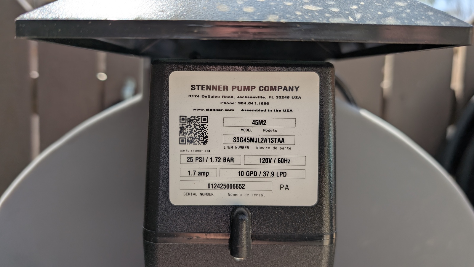 Stenner pump label (in place)