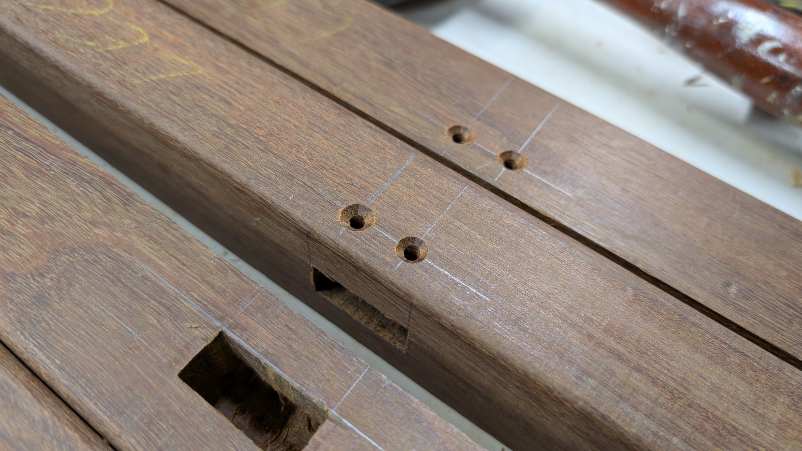Holes and countersize for motises