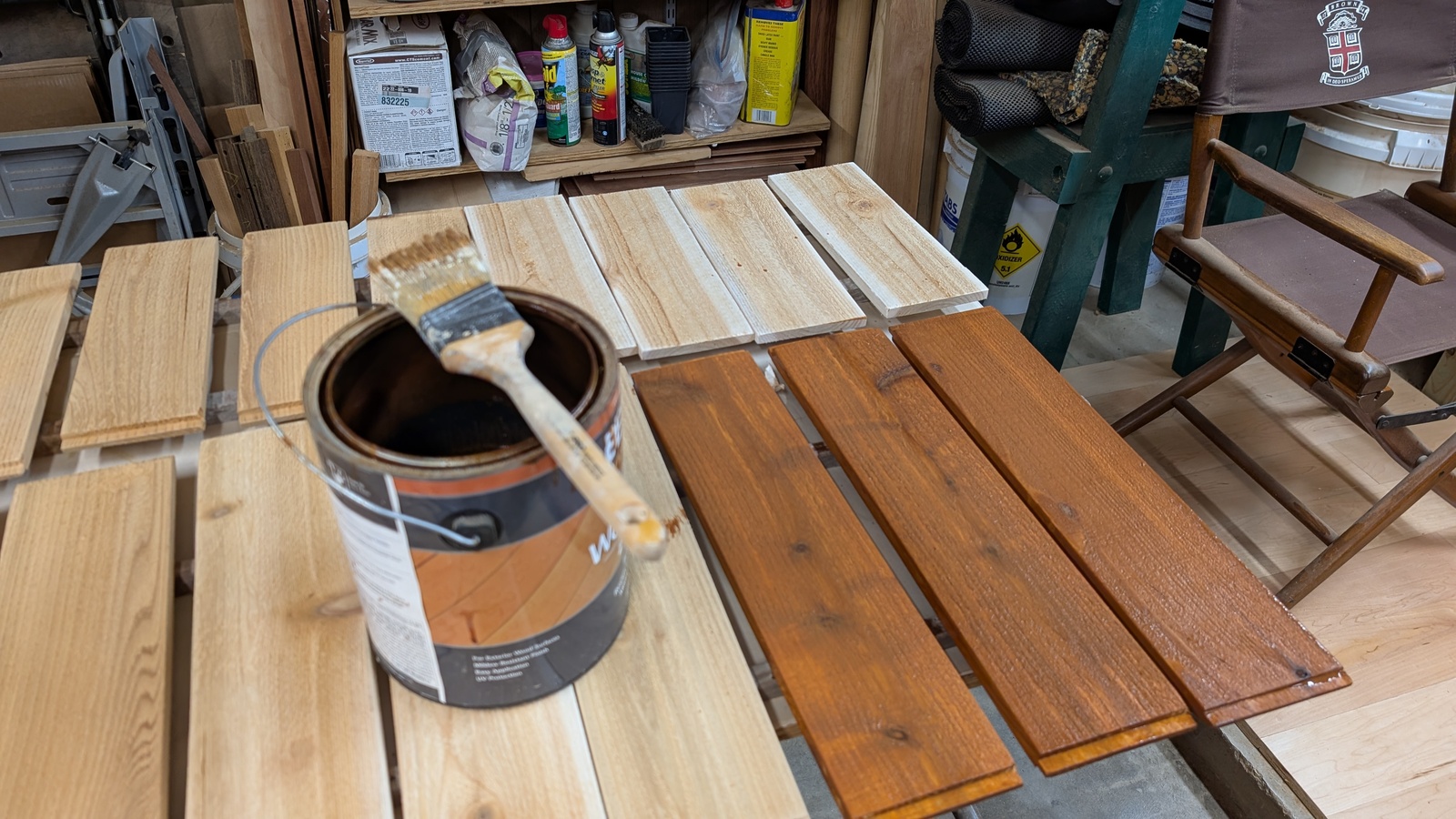 Staining cedar side boards